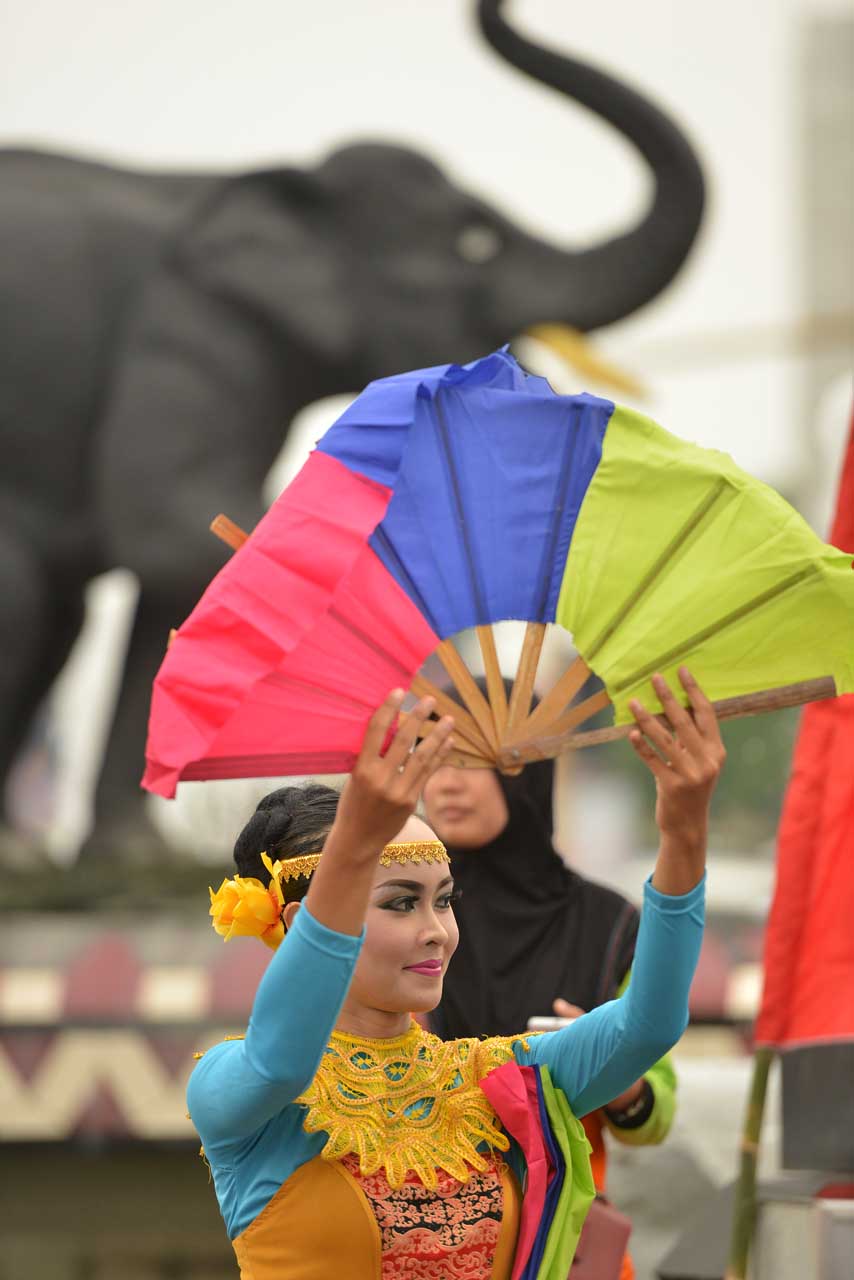 Sekitar pukul 16:30 barulah peserta parade tari tiba di Tugu Adipura, setelah bersiap-siap di Pasar Seni. Mereka berjalan kaki menuju Tugu Adipura, untuk menarik perhatian masyarakat yang lewat tentunya. Selain masyarakat yang sudah hadir menunggu atraksi mereka di Tugu Adipura yang juga dikenal dengan sebutan bundaran gajah.
