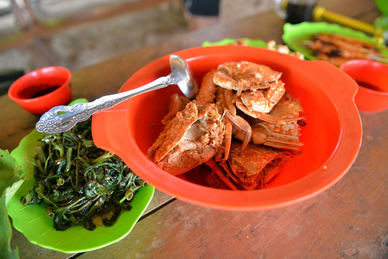 Seperti yang sudah saya perkirakan, menunya bakal ga jauh-jauh dari seafood. Di sini kami disuguhkan kembali ikan bakar, cah kangkung, gangan ikan, cumi goreng tepung, kepiting bumbu, dan sate udang. Perut sudah kenyang pun, mulut rasanya pingin tetap menguyah makanan yang masih tersisa di meja. Jarang banget bisa makan lezat di pulau kecil begini. Kalau ada kesempatan mengulang, saya akan lakukan lagi.