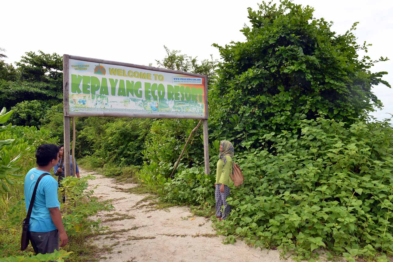Berjalan 500an meter, kami sampai di sebuah bangunan bertuliskan “Kupi & Resto Kepayang Island”. Hanya ada beberapa penjaga yang sepertinya sedang beberes membersihkan area.
