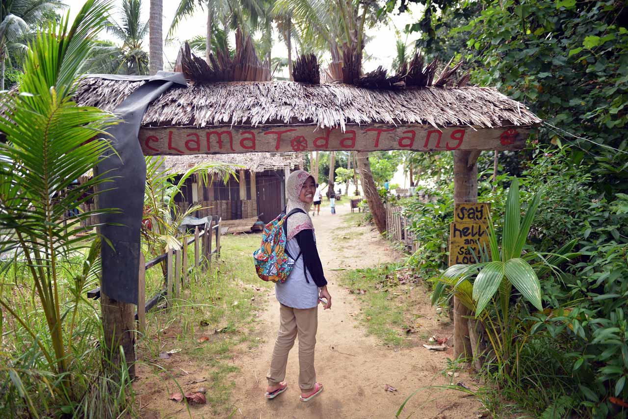 Turun dari bis, kami dipersilakan menuju pantai. “Nanti kita foto bareng di bawah tulisan Welcome to Belitong ya.” Begitu pesan bang Romi guide kami sewaktu masih di dalam bis. Tetapi saya sepertinya ketinggalan kereta. Masih berkutat dengan urusan ukuran fin untuk kaki saya yang berukuran di atas rata-rata, saya sepertinya tak sempat berfoto bareng kawan-kawan lain di bawah tulisan itu π