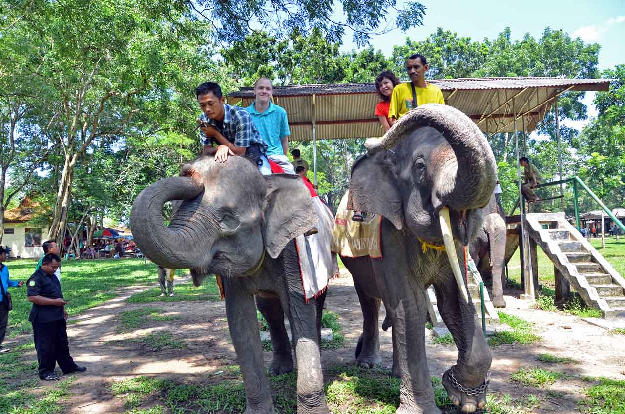 Terakhir ke Pusat Latihan Gajah tahun 2013 bersama seorang kawan dari Jakarta dan Inggris, kami masih bisa menaiki gajah yang sudah disediakan oleh petugas. Bisa berkeliling sekitar tempat parkir kendaraan, bisa juga berkeliling PLG selama kurang lebih satu jam. Satu orang satu gajah, memasuki rawa-rawa dan area pepohonan di sekitar PLG, benar-benar pengalaman yang luar biasa bagi yang suka dengan alam dan hewan.
