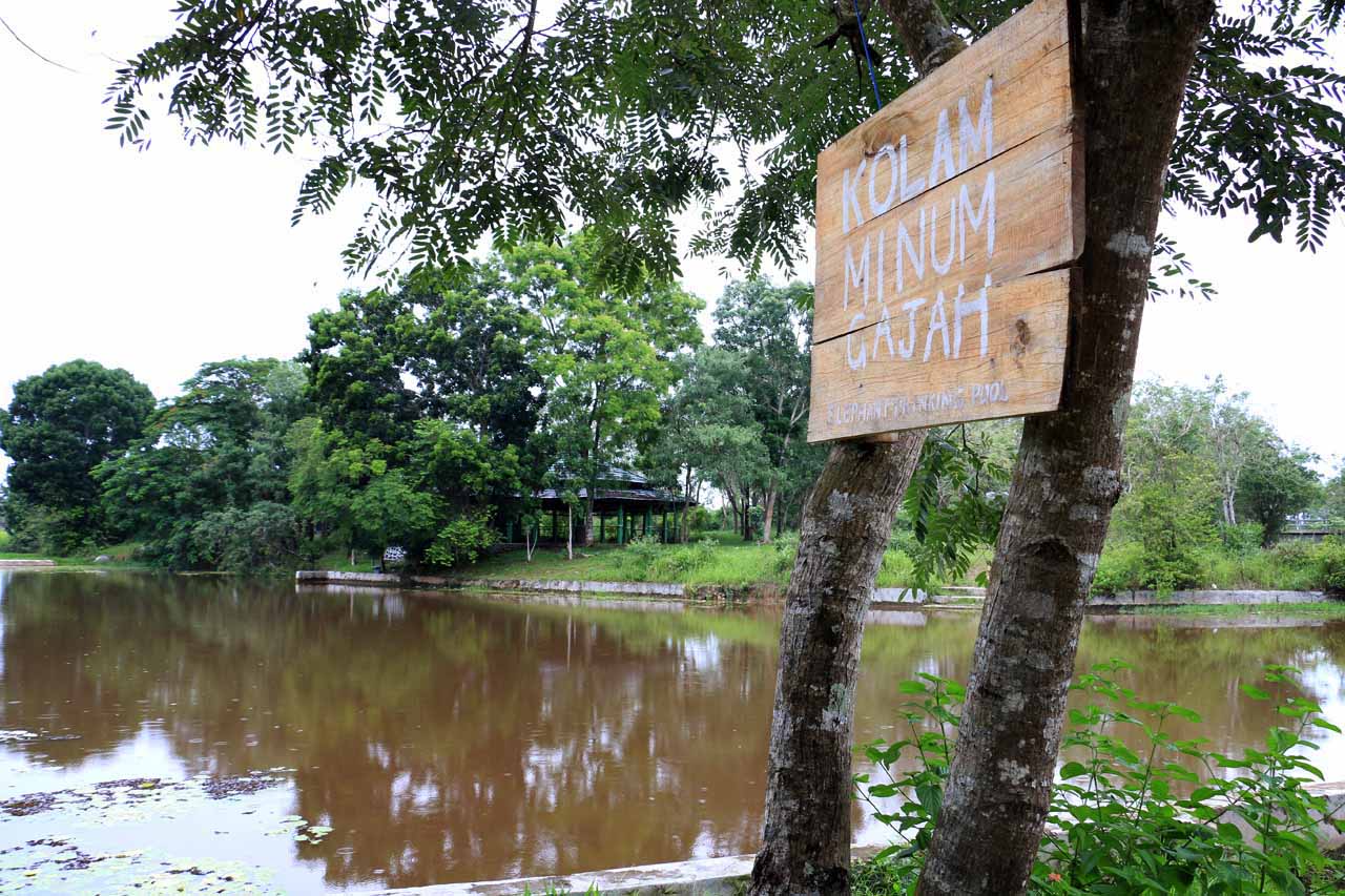 Lalu kita bisa menjumpai sebuah kolam yang besar, dimana gajah bisa masuk untuk mandi dan minum airnya. Kalau datang di sore hari, kita bisa melihat gajah-gajah mandi bersama pawangnya masing-masing sebelum kembali masuk ke kandang. Kita masih tengah hari di sini, terlalu lama menunggu sore hari menjelang gelap.