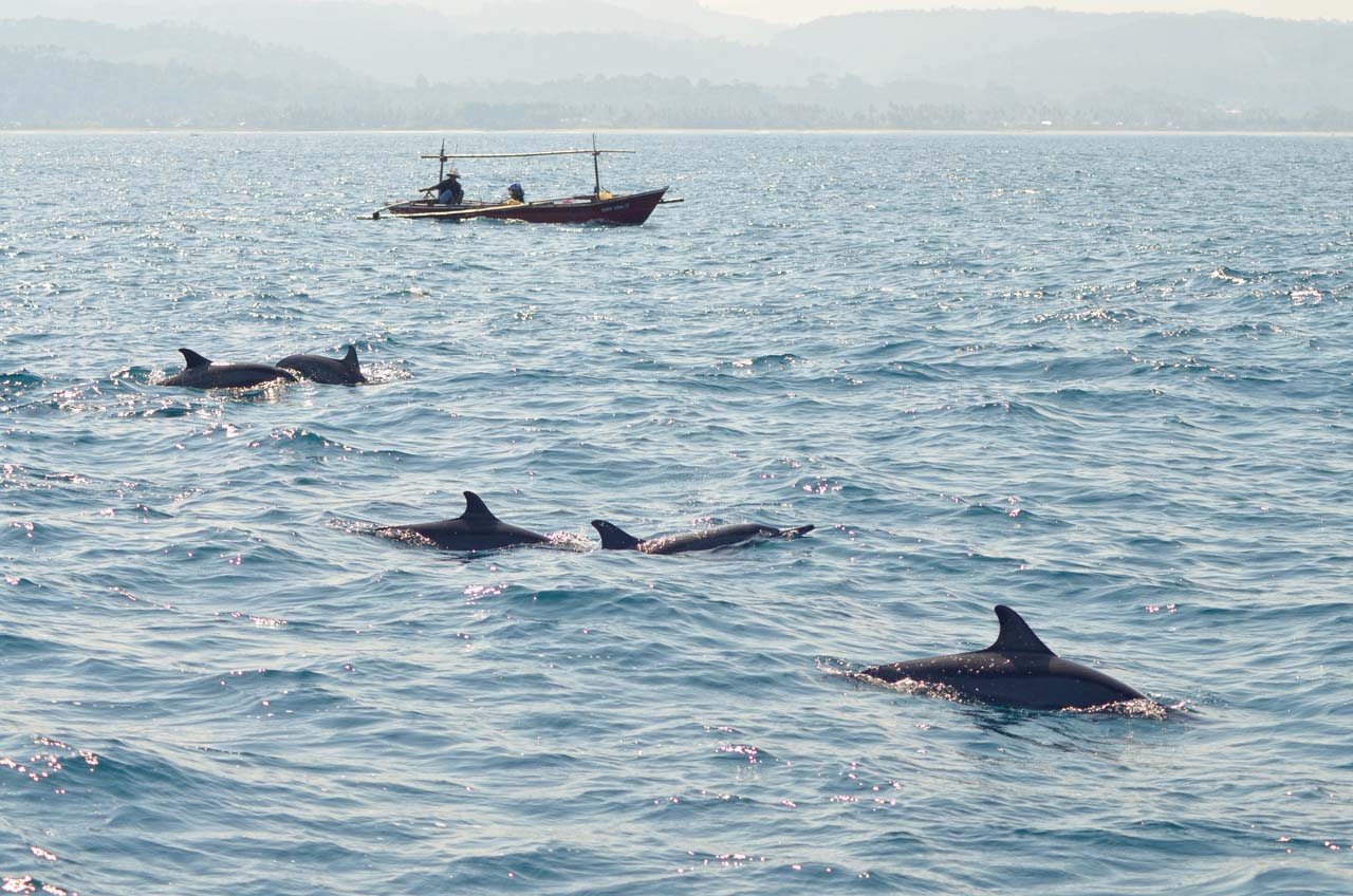 Agak jauh terlihat seorang nelayan memberi kode ke kami untuk mendekat. Sekali lagi kami berjumpa dengan satu rombongan lumba-lumba yang berloncatan mengikuti perahu nelayan. Melihat lumba-lumba langsung di habitat aslinya, melahirkan kekaguman dan kebahagiaan yang luar biasa. Apalagi bisa merekamnya menjadi beberapa foto yang bisa ditunjukkan ke keluarga di rumah dan kawan-kawan di kantor sepulang nanti.