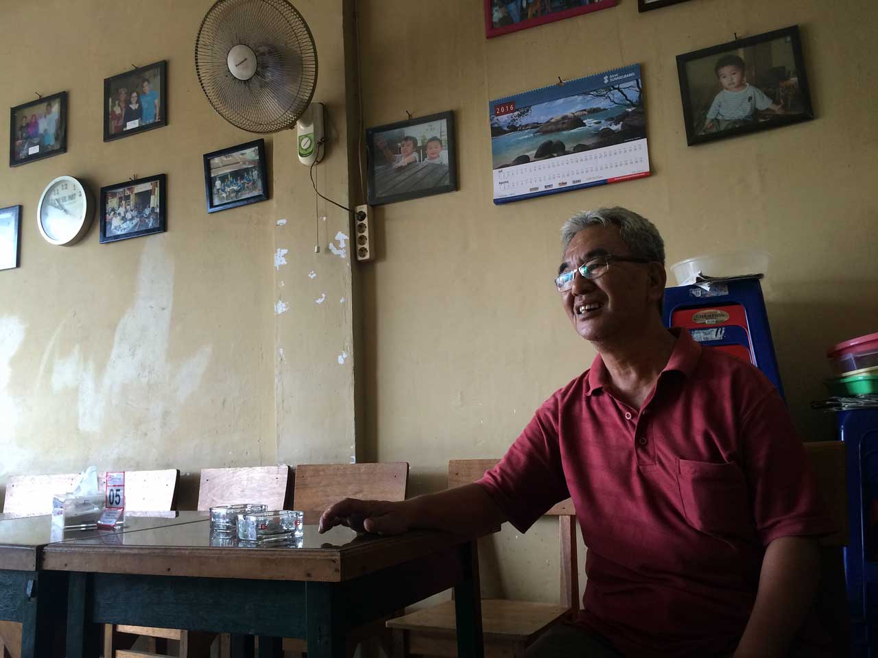 Semua kenal semua orang di sini. Beberapa kali orang baru masuk, mereka langsung menyapa saya yang baru pertama kali datang. Saat mau berfoto di satu pojokan pun, kami dipersilakan oleh yang sedang duduk di mejanya. Dia rela mengalah agar kami bisa berfoto di situ. Agar bisa merasakan Romantika Warung Kopi Belitung ya 🙂