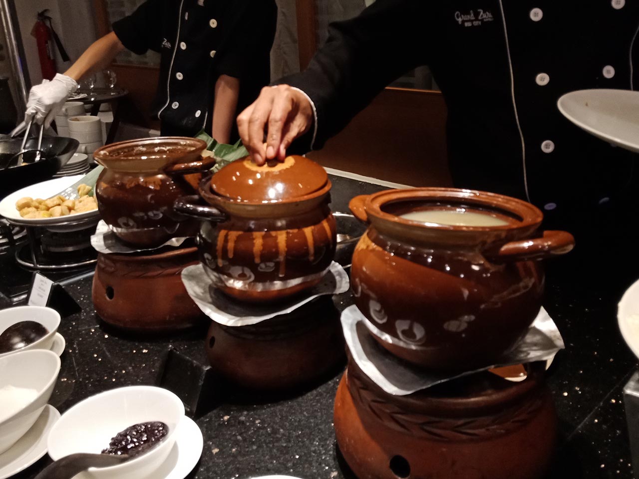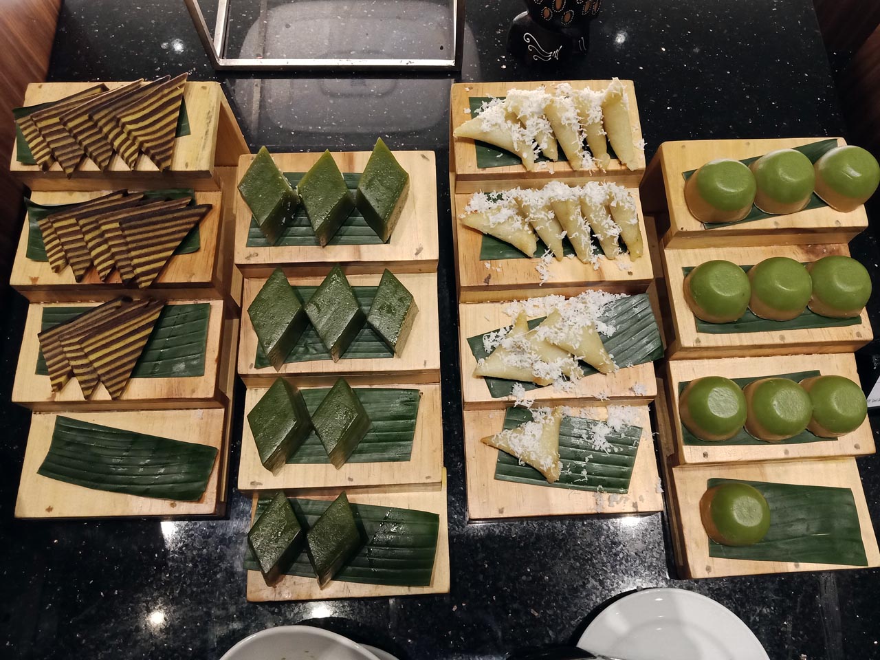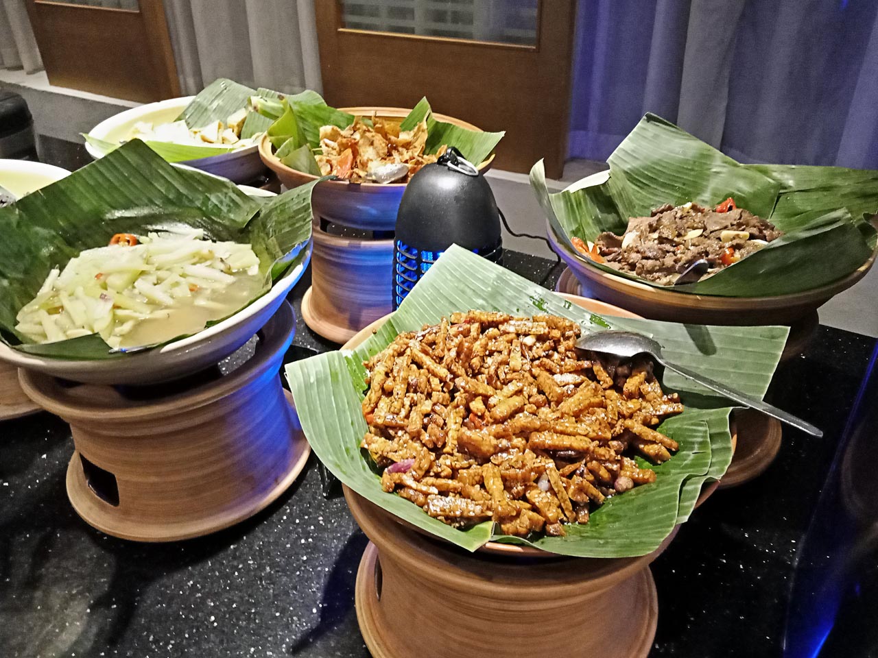 Banyak sekali pilihan makanan tradisional Nusantara malam itu. Saya mencoba tekwan, kue lupis, bubur kacang ijo ketan itam. Sayurannya juga banyak, ada soto, sayur ikan, gurame goreng mayonaise, dan lainnya. Dan karena ini bulan ramadhan, ada tambahan kurma yang enak banget.