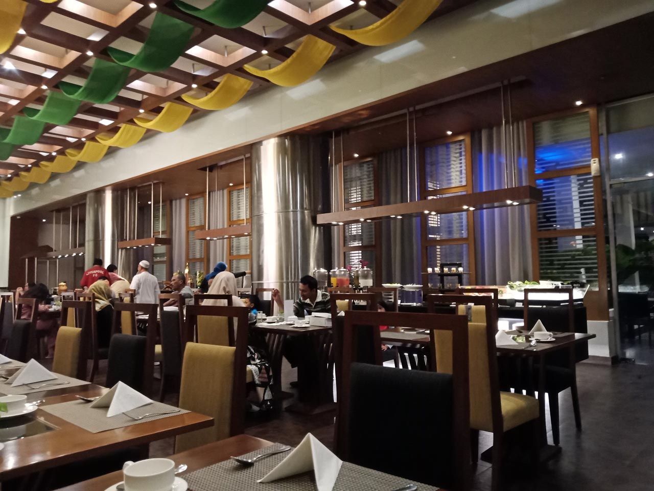 Hari kedua kami di Tangerang Selatan adalah hari pertama puasa bulan Ramadhan tahun 2018. Hampir seharian jalan-jalan di mal dan nonton film di XXI. Saat tiba kembali di hotel perut sudah dalam keadaan laper banget. Dan pingin makan banyak. Kali ini kami mencoba makanan prasmanan di Cerenti Restaurant.